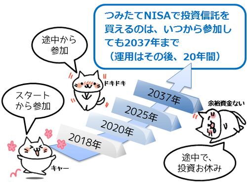 【2023年1月更新】 【つみたてNISAの新規投資の終了について】記事のつみたてNISAは制度変更により2023年で新規の投資が終了になりました。非課税期間は20年間で変わらず運用できます。代わりに拡充された新NISAが2024年から始まります。 つみたてNISAは2037…